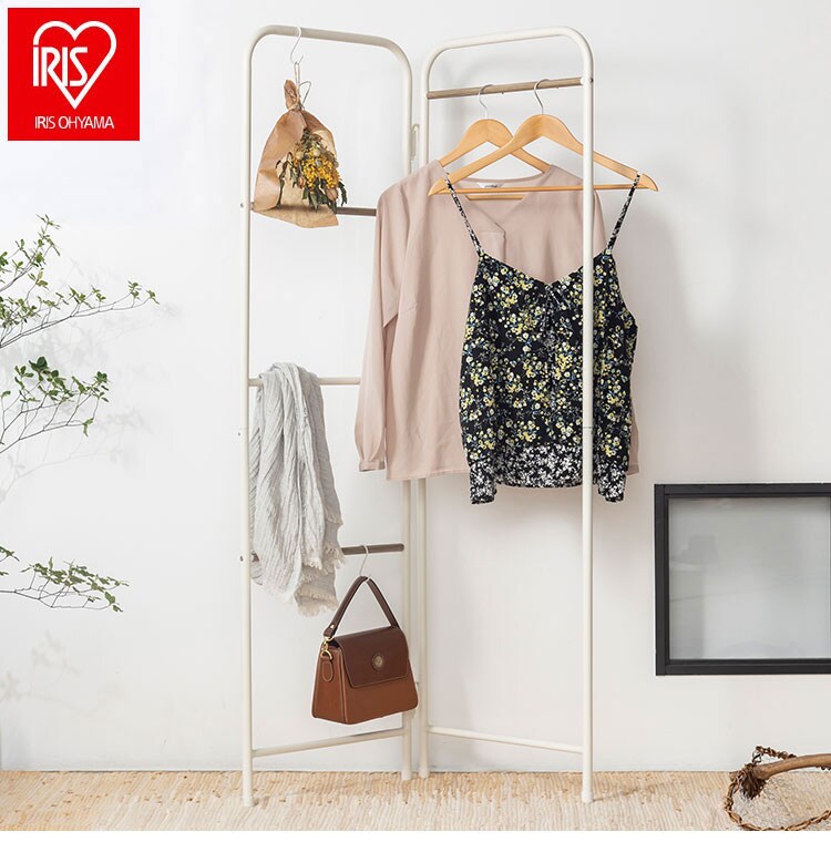 省スペースでも気軽に設置できるデザイン性のあるスタイルハンガーです。ワンピースやコートなどの長物と、衣類やバッグ、帽子、ストールなどの小物を掛けることができます。お気に入りの衣類を飾るディスプレイ場所としても活用できます。使用しないときは、折りたたんでコンパクトに収納可能です。便利なS字フックが2個付いています。簡単に組み立てができます。使用時の推奨開き角度は90度です。
