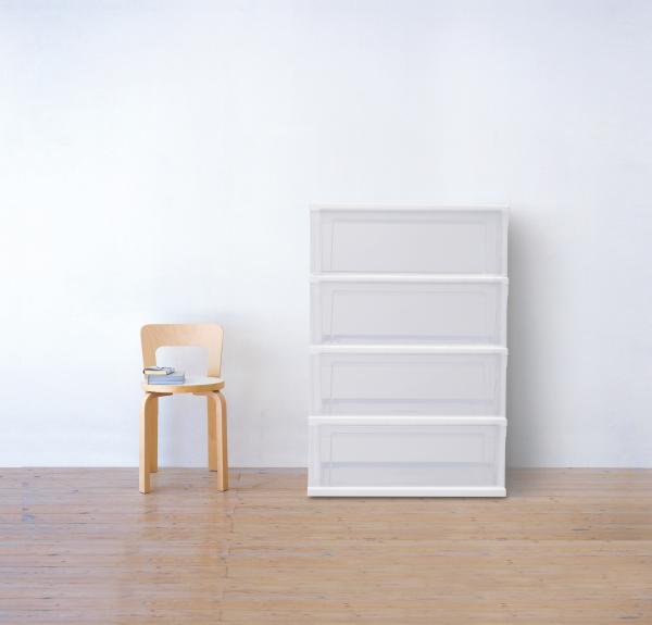 工具不要で、簡単に組み立てができるチェストです。フレーム・引き出し・天板を組み合わせて完成します。一体型フレームでぐらつきません。組み立て時間は約1分程です。リビングや寝室、子供部屋の収納にぴったりです。使いやすいサイズ感でクローゼットにもおさまります。引き出しにはストッパーが付いており、落下を防ぎます。