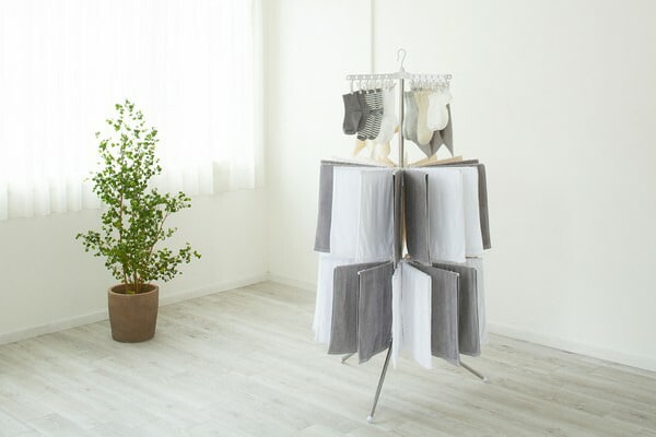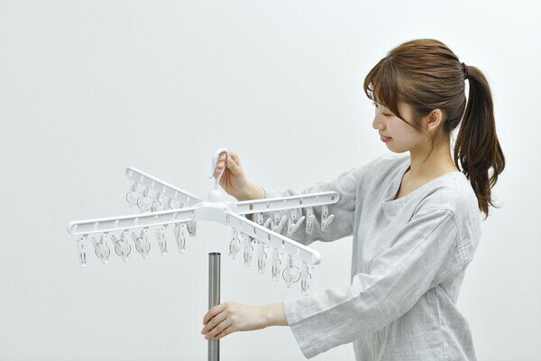 基本仕様 収納時サイズ(約) Φ180×2020mm 耐荷重(約) 全体10kg、ピンチハンガー1本あたり0.5kg(計2kg)、タオルハンガー1本あたり0.25kg(計8kg) 干せる目安(約) 4人分