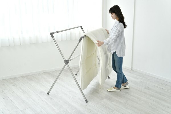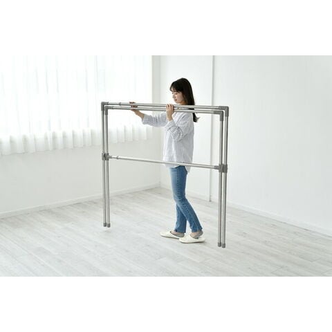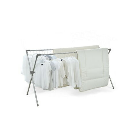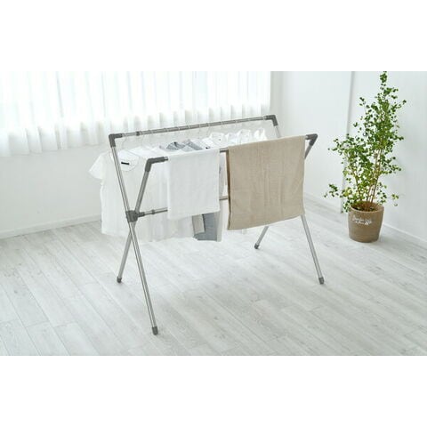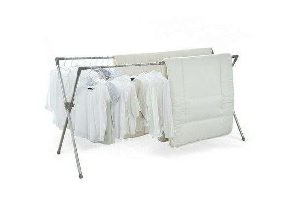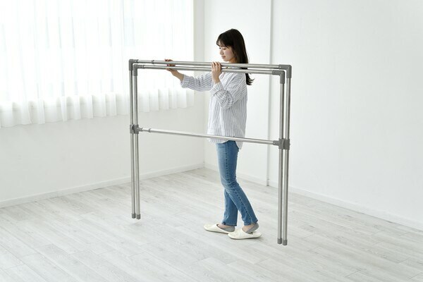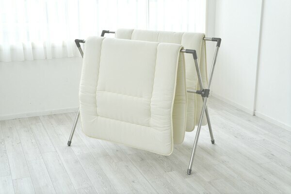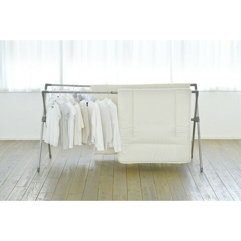 布団の枚数に合わせて、伸縮できる大容量タイプのふとん干しです。使用しないときは、折りたたんで収納できます。ステンレス巻きスチールパイプを採用しているので、丈夫でサビに強く長くお使いいただけます。工具不要で、組み立てが簡単です。