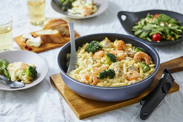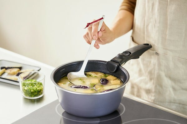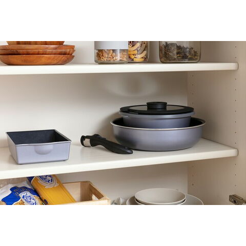 基本仕様 セット内容 フライパン26cm、なべ20cm、エッグパン、ガラスふた20cm、PEシールふた20cm、マルチハンドル 満水容量(約) フライパン26cm:3.3L、なべ20cm:2.4L、エッグパン:1.1L エッグパン寸法(約) 20×14cm 対応熱源 IH・ガスコンロ・ラジエントヒーター・オーブン・その他の電気ヒーター対応(※電子レンジでは使用できません。)