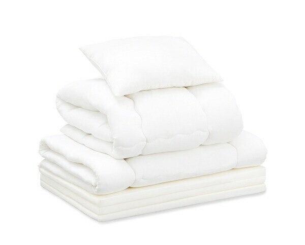 基本仕様 セット内容 掛け布団、敷き布団(低反発ウレタンフォーム入り)、枕、掛け布団カバー、ボックスシーツ、枕カバー2枚、除湿シート、三つ折りマットレス、収納バッグ