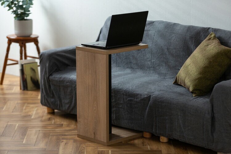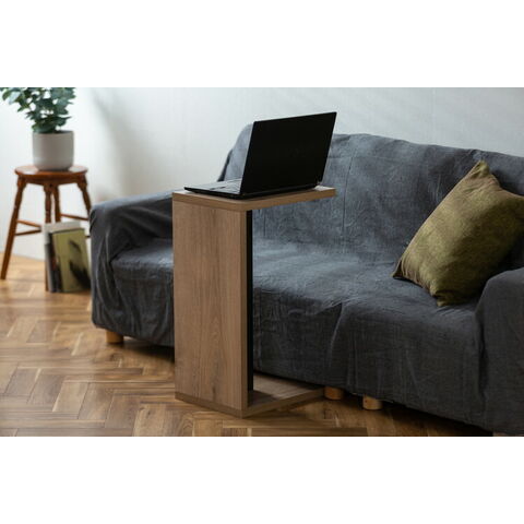 シンプルなデザインのサイドテーブルです。コの字型でソファやベッドの下の隙間に差し込める使い勝手のよい仕様です。天板の厚さは約2.3cmとしっかりとした作りです。メラミン樹脂加工で熱や水、汚れに強くお手入れが簡単です。小物やよく使用するものを置くのに便利です。ノートパソコンも置けます。場所を選ばずお使いいただけます。横置きにすることで、ミニテーブルに早変わりします。