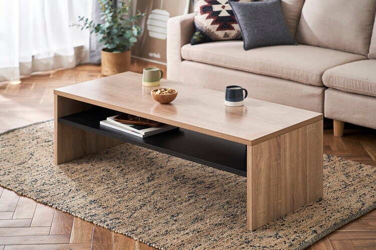 シンプルなデザインのリビングテーブルです。場所をとらないサイズ設計です。お部屋を開放的に演出します。天板の厚さは約2.3cmとしっかりとした作りです。メラミン樹脂加工で熱や水、汚れに強くお手入れが簡単です。フラットで使いやすい収納棚付きです。AVボードとしてもお使いいただけます。