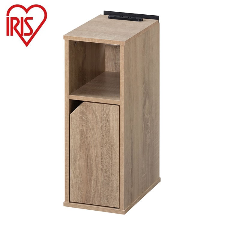 アイリスオーヤマ ナイトテーブル 扉付き 幅18 サイドテーブル コンセント ナイトテーブル ベッドサイド スマホスタンド付き 扉 収納付き 隙間収納 すき間収納 ライトナチュラル NTB-180T IRIS OYAMA【送料無料】