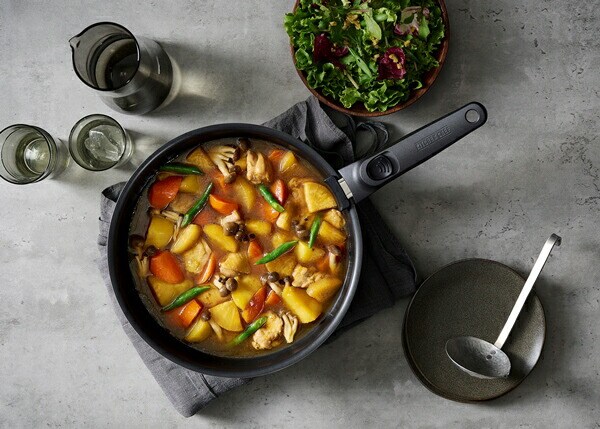 非粘着性に優れたふっ素樹脂をトップコーティングに使用しているためくっつきにくく、アイリスオーヤマ史上NO.1の滑りやすさを実現したフライパン・鍋のセットです(※2023年1月時点)。極小セラミック粒子とダイヤモンド粒子を配合した特殊コーティングでキズや摩擦にも強いです。3層構造コーティングで耐久性をアップしています。汚れがつきにくく、落ちやすいので楽に洗えます。日本の食文化に合わせフライパンを深型にしているので、炒め料理や煮物、汁物など幅広く使えます。ハンドルの着脱は簡単で、握るだけで取り付けができ、ロック解除レバーを押すだけで外すことが出来ます。使用しないときは重ねて省スペースで収納できます。保存時に便利なPEシールふた付きです。落ち着いた色合いです。