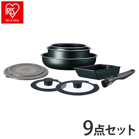 アイリスオーヤマ TERACOAT テラコート フライパンセット 9点セット EHDC-T9S ダークグリーン 取っ手のとれる 着脱 フライパン 鍋 セット IRIS OHYAMA【送料無料】