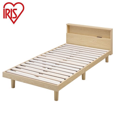 アイリスオーヤマ すのこベッド S シングル ヘッドボード付き 2口コンセント スマホスタンド 棚付き 宮付き 宮棚付き ベッドフレーム すのこベッド 通気性 ナチュラル SNB-S IRIS OYAMA【送料無料】