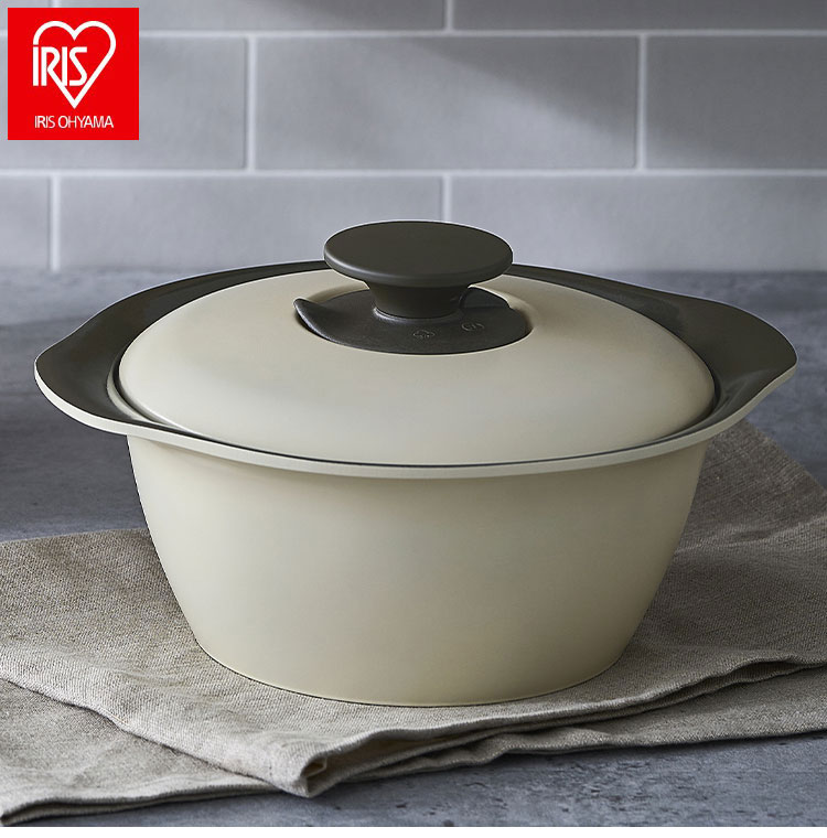 アイリスオーヤマ 無加水鍋 20cm MKS-20 ディープアイボリー セラミック鍋 くすみカラー 可愛い かわいい おしゃれ IRIS OHYAMA【送料無料】