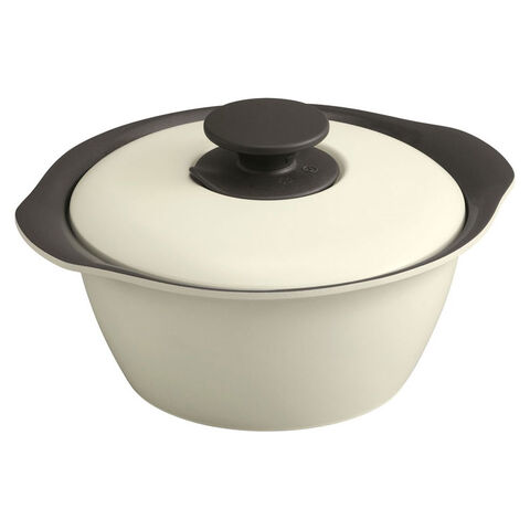 余分な水分を使わない調理が可能となります。食材からでるうまみを含んだ蒸気が、ふた裏面にある凸面を伝って食材にまんべんなく降り注ぐウォータードロップ現象により素材本来のおいしさを引き出します。専用のふた取っ手に開閉可能な蒸気口がある為、蒸気を調節できます。栄養を逃しにくく、おいしく作ることができます。熱伝導率がよく、時短調理をすることができます。耐磨耗性試験50万回クリアしたセラミックコーティング加工により、こびりつきにくく、汚れもスルっと落ちます。丸みのある形状とくすみカラーでかわいらしいデザインです。ガス火・IHに対応しています。