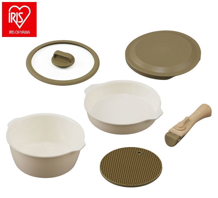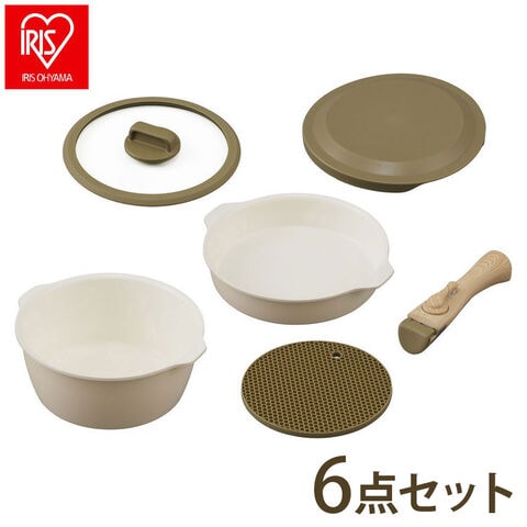 アイリスオーヤマ お皿になるフライパン6点セット DPAN-6S アイボリー 取っ手が取れる フライパンセット 鍋 着脱ハンドル セラミック 可愛い かわいい おしゃれ IRIS OHYAMA【送料無料】
