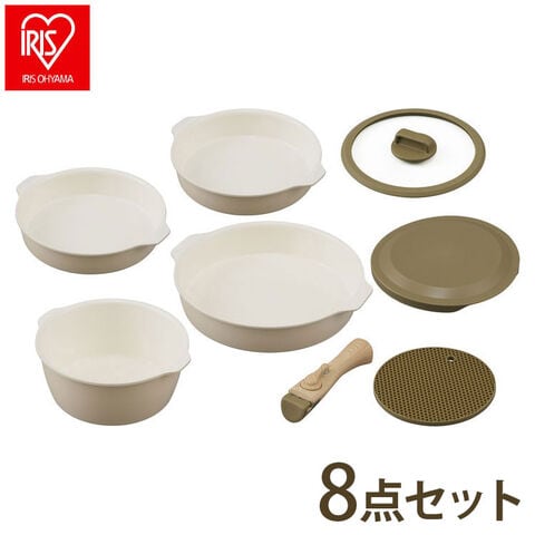 アイリスオーヤマ お皿になるフライパン8点セット DPAN-8S アイボリー 取っ手が取れる フライパンセット 鍋 着脱ハンドル セラミック 可愛い かわいい おしゃれ IRIS OHYAMA【送料無料】