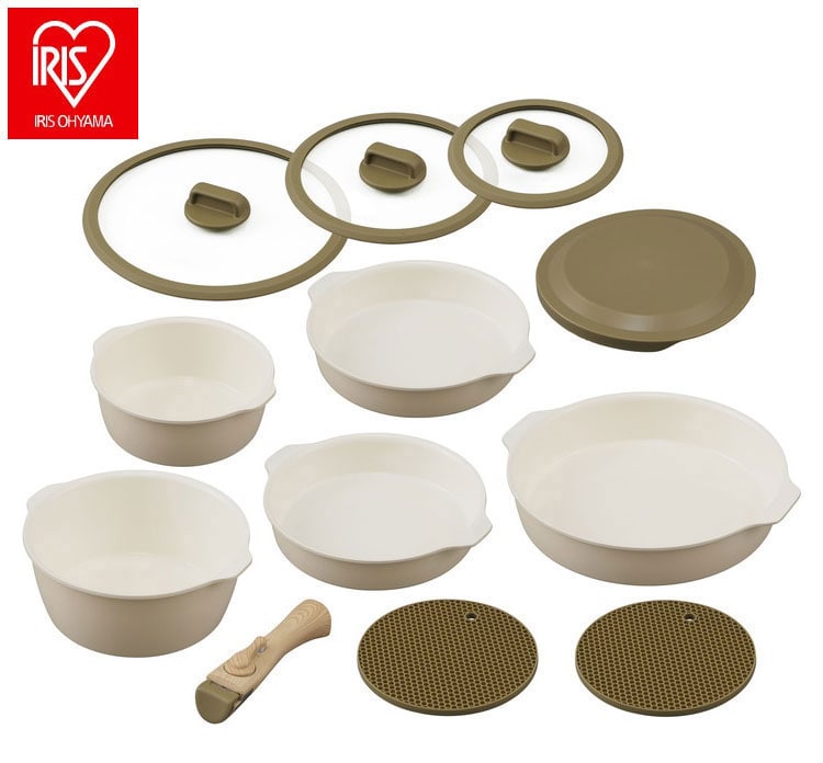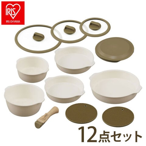 アイリスオーヤマ お皿になるフライパン12点セット DPAN-12S アイボリー 取っ手が取れる フライパンセット 鍋 着脱ハンドル セラミック 可愛い かわいい おしゃれ IRIS OHYAMA【送料無料】