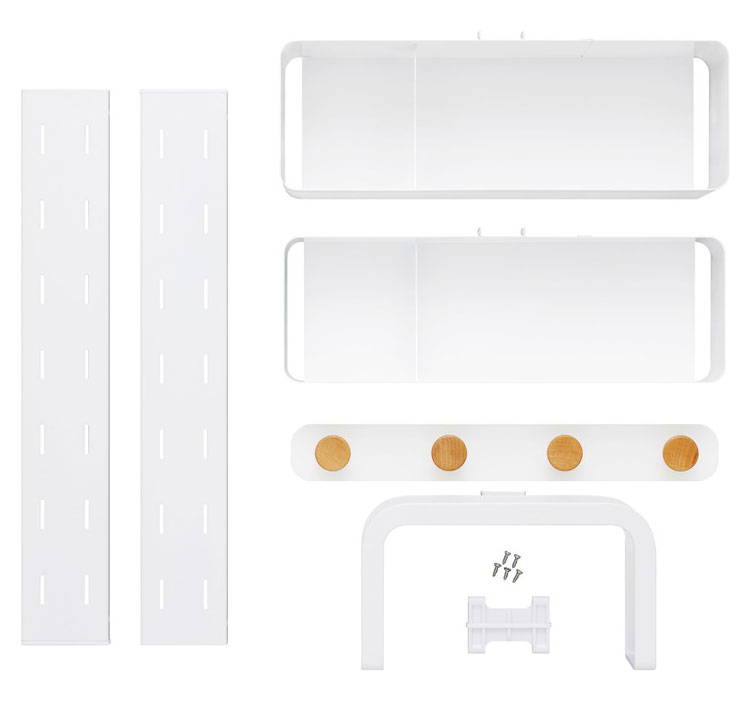 ●耐荷重(約):全体5.8kg、ボックス1個あたり1.7kg、フック1個あたり0.1kg、マット立て2.0kg