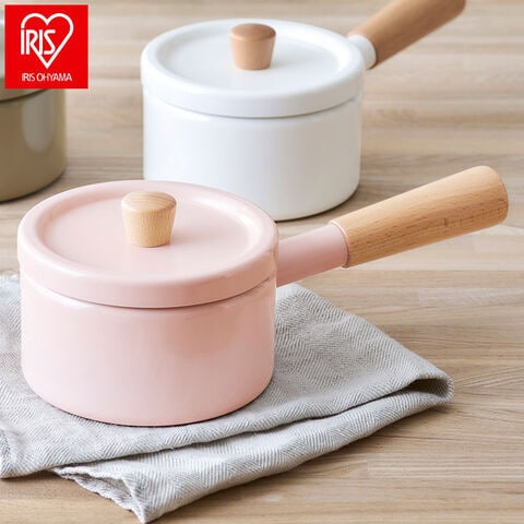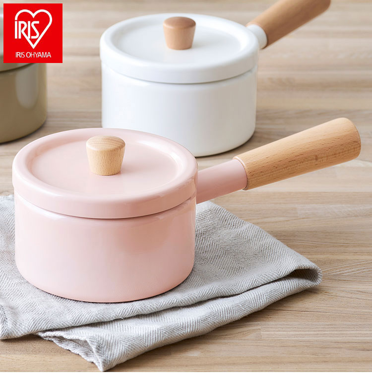 アイリスオーヤマ ミルクパン 14cm MLKP-14 ライトピンク 鍋 小鍋 セラミック鍋 天然木ハンドル くすみカラー 可愛い かわいい おしゃれ IRIS OHYAMA【送料無料】