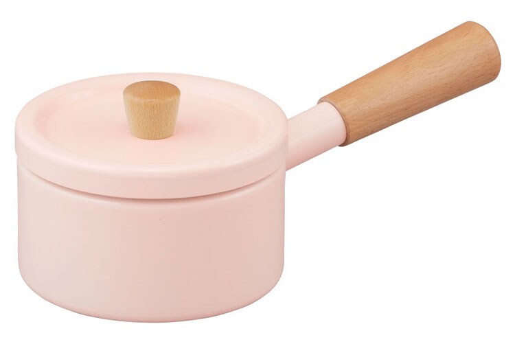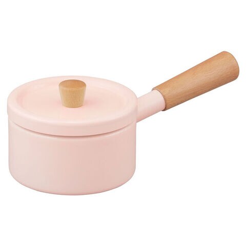直径14cmと使いやすいコンパクトなサイズで、かわいらしいカラーとデザインのミルクパンです。ミルクや飲み物を温めるのはもちろん、少量の調理や離乳食作りに便利です。セラミックコーティング加工により、こびりつきにくく、汚れもスルっと落ちます。ハンドルとつまみは天然木を採用し、熱を伝えにくくなっています。注ぎ口が付いている為、液体などを注ぎやすい形状となっています。ガス火・IHに対応しています。