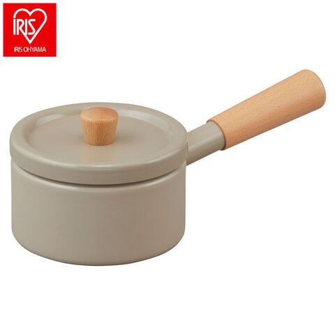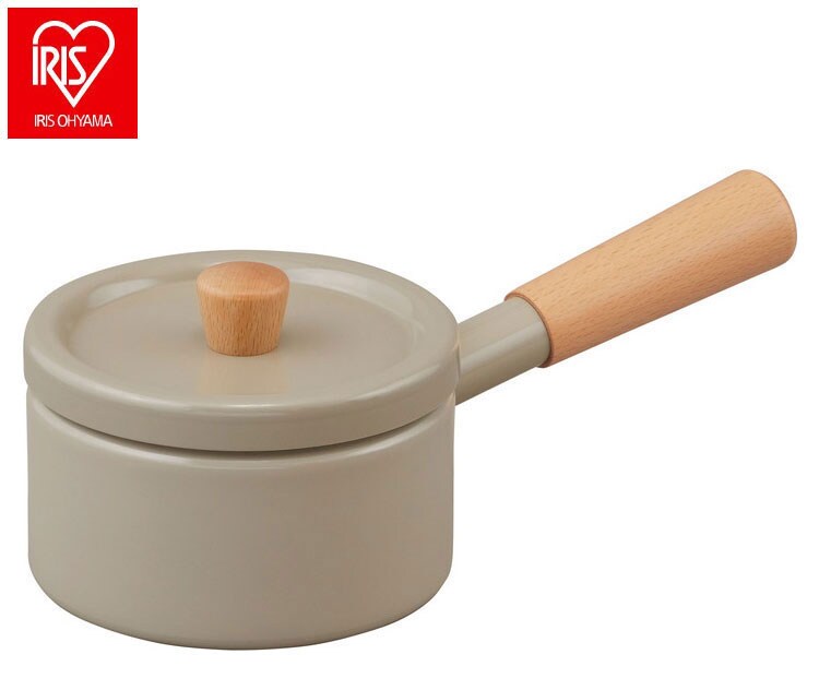 アイリスオーヤマ ミルクパン 14cm MLKP-14 ウォームグレー 鍋 小鍋 セラミック鍋 天然木ハンドル くすみカラー 可愛い かわいい おしゃれ IRIS OHYAMA【送料無料】