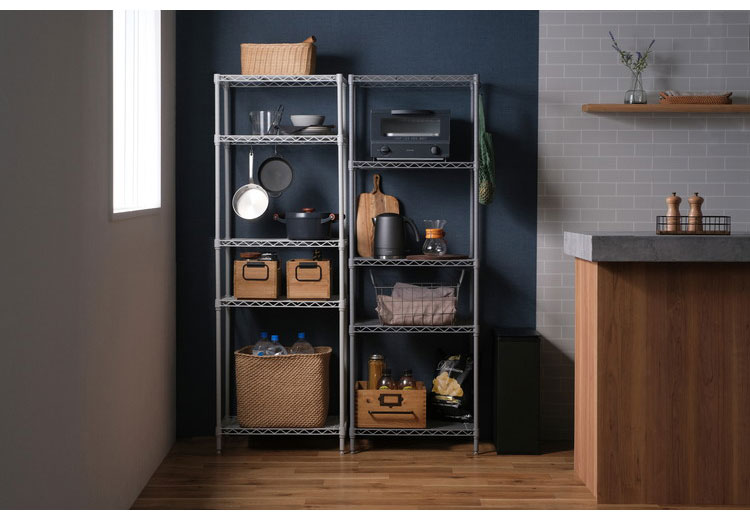 省スペースでも、たくさん収納できるハイタイプのカラー メタルラック(R)です。収納に悩んでいる方におすすめの商品です。キッチン用品、デスク周りやランドリーなど幅広い収納でお使いいただけます。別売のキャスターを取り付けると移動も簡単に行えます。お客様組み立てとなります。