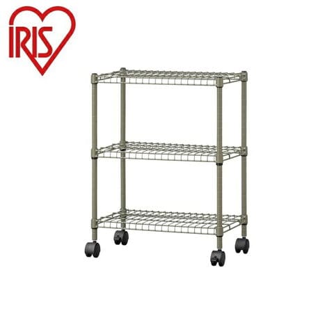 アイリスオーヤマ カラースチールシェルフ 3段キャスタータイプ カーキ SEC-665C IRIS OHYAMA【送料無料】