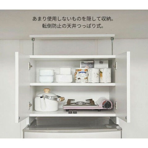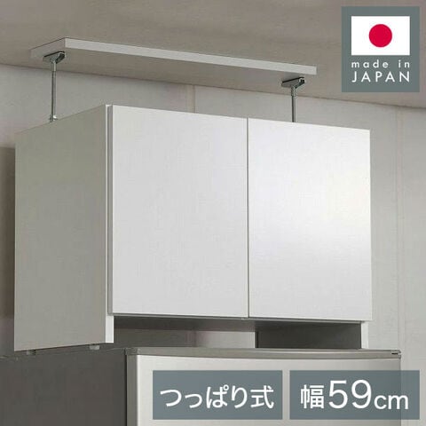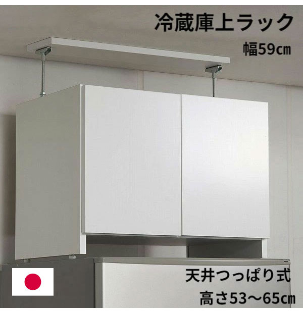 冷蔵庫上 突っ張り 日本製 冷蔵庫上収納 耐震加工 収納 幅59cm 高さ調節機能付き 光沢仕上げ キッチン小物収納 キッチン収納 水切り 日本製 完成品ストッカー キッチンストッカー【送料無料】