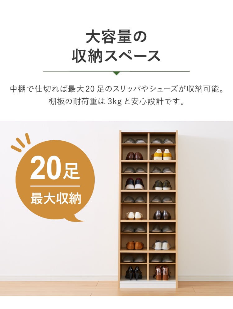 ・靴とスリッパを収納できるダブル棚板仕様のスリッパ&シューズラック