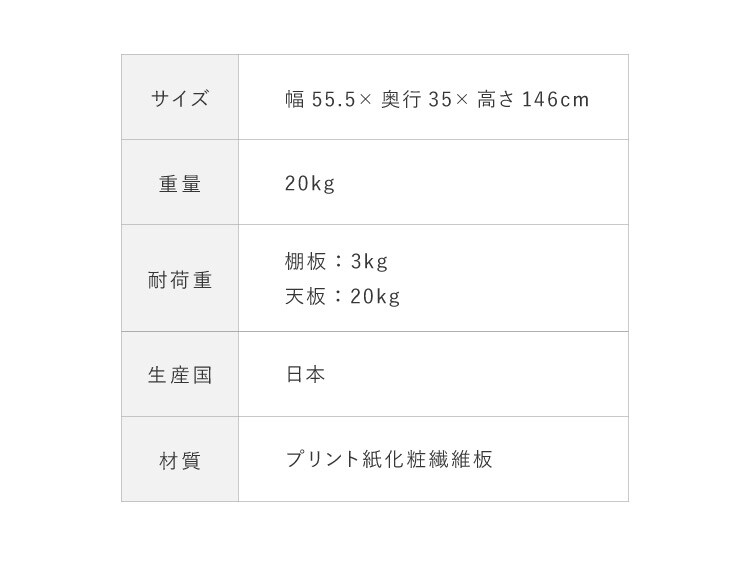 幅55.5、奥行35、高さ146cm