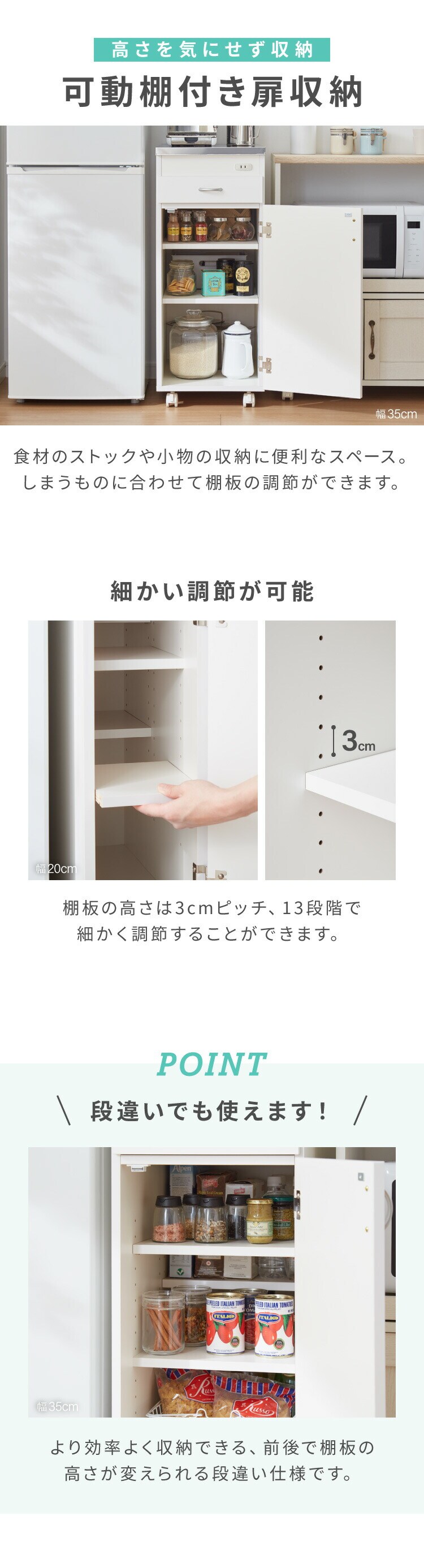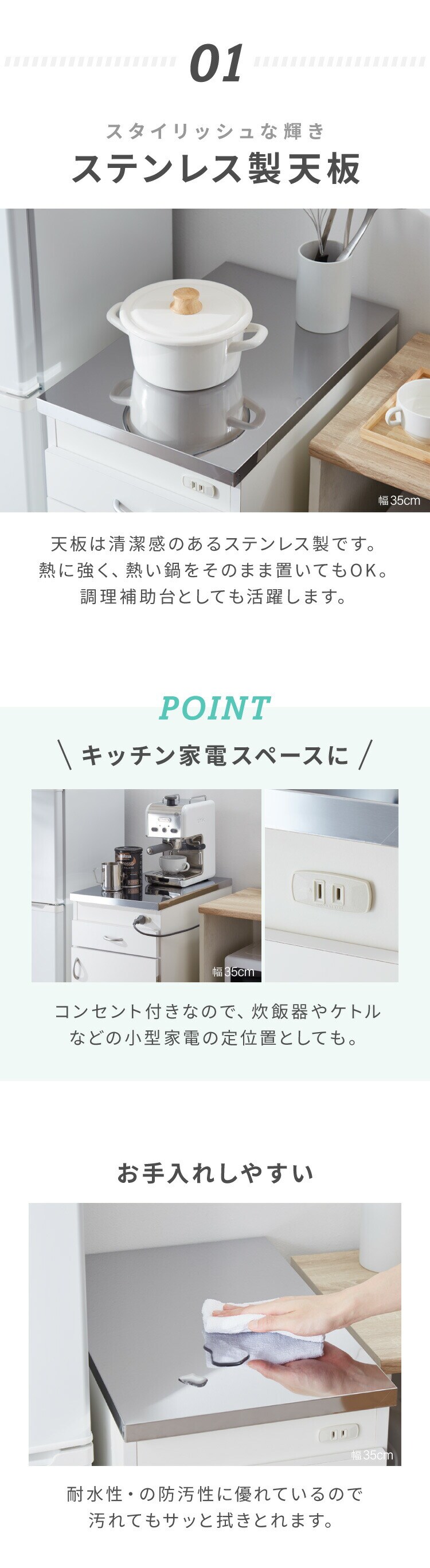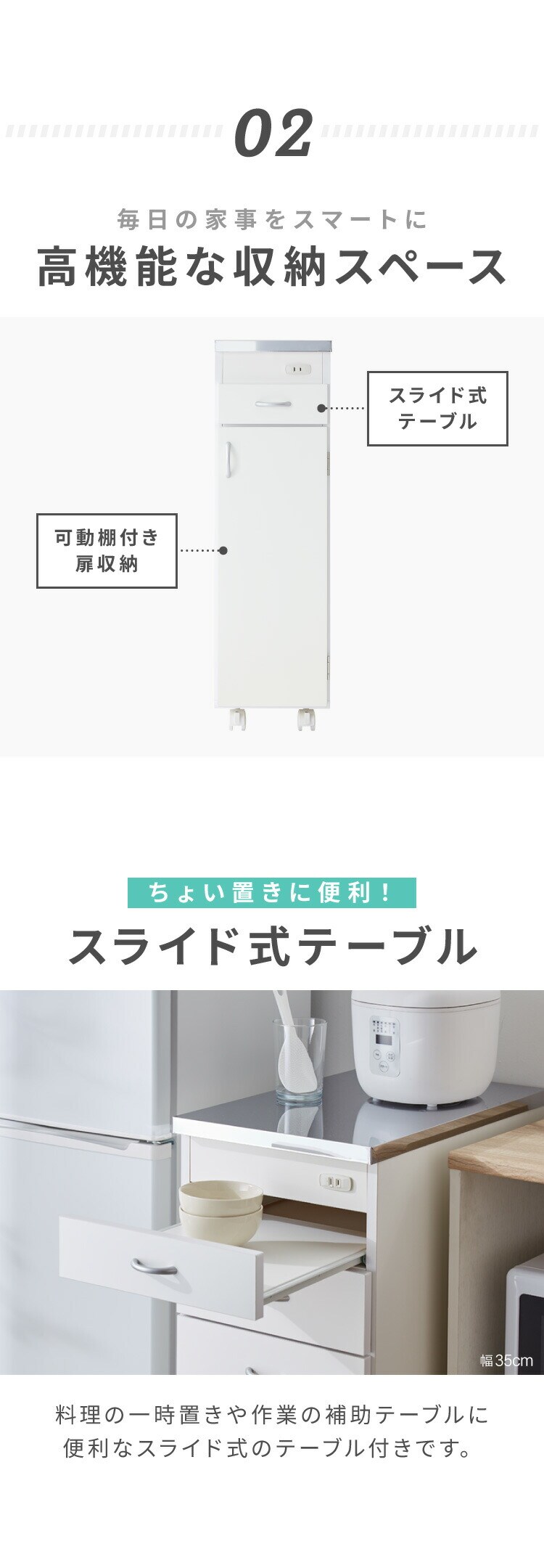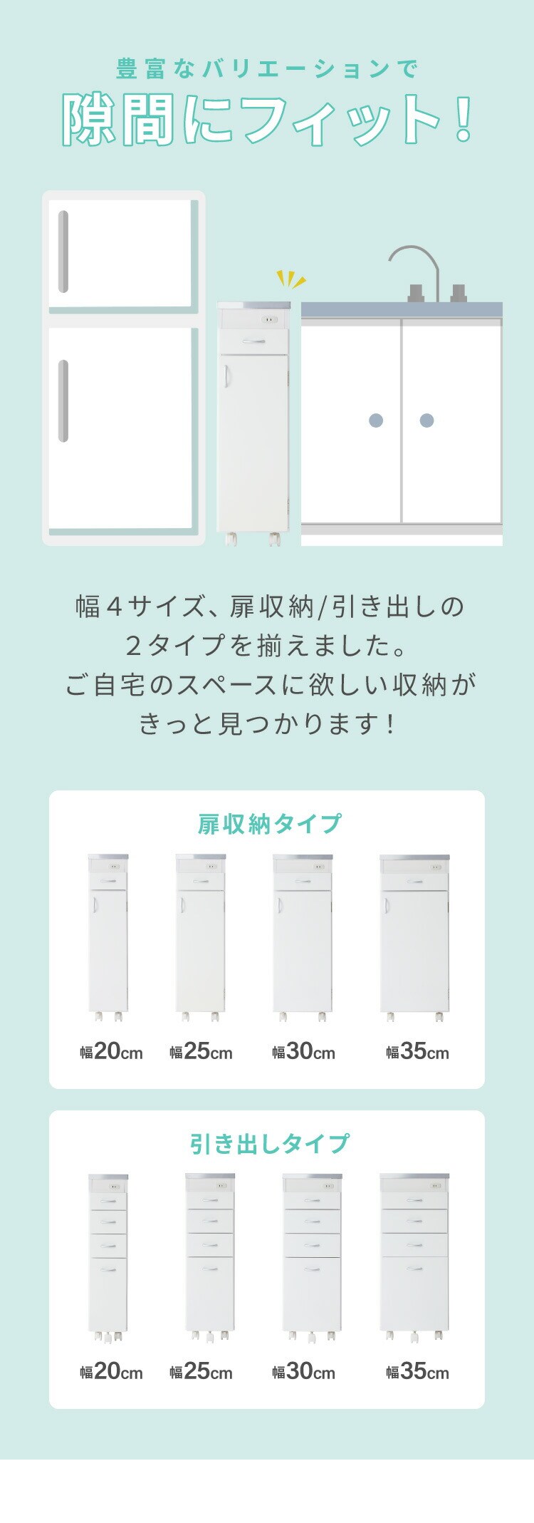 幅は20cm・25cm・30cm・35cmの4サイズ展開で、キッチンのスペースにぴったりフィット