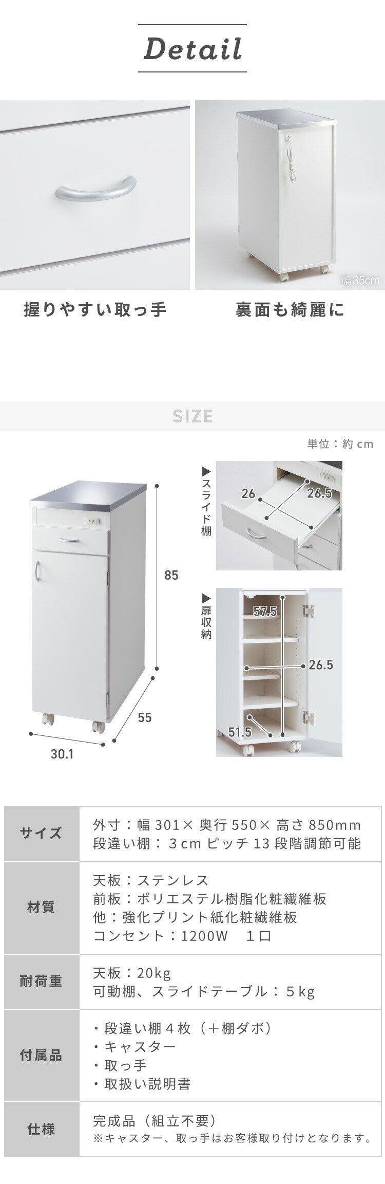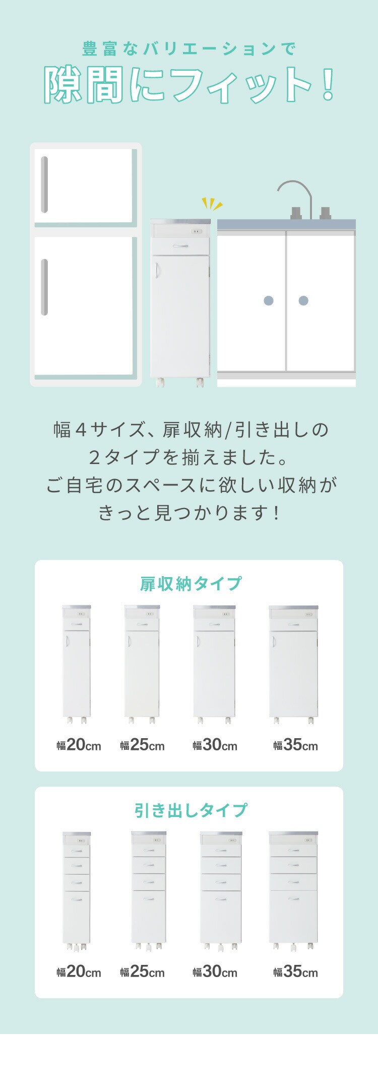 スリムサイズでキッチンに無駄なく収納を増やしたい方