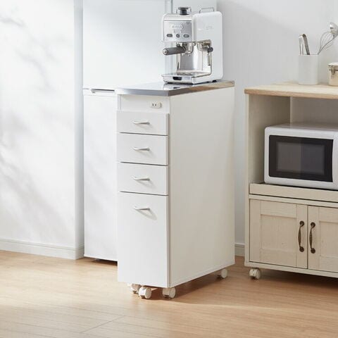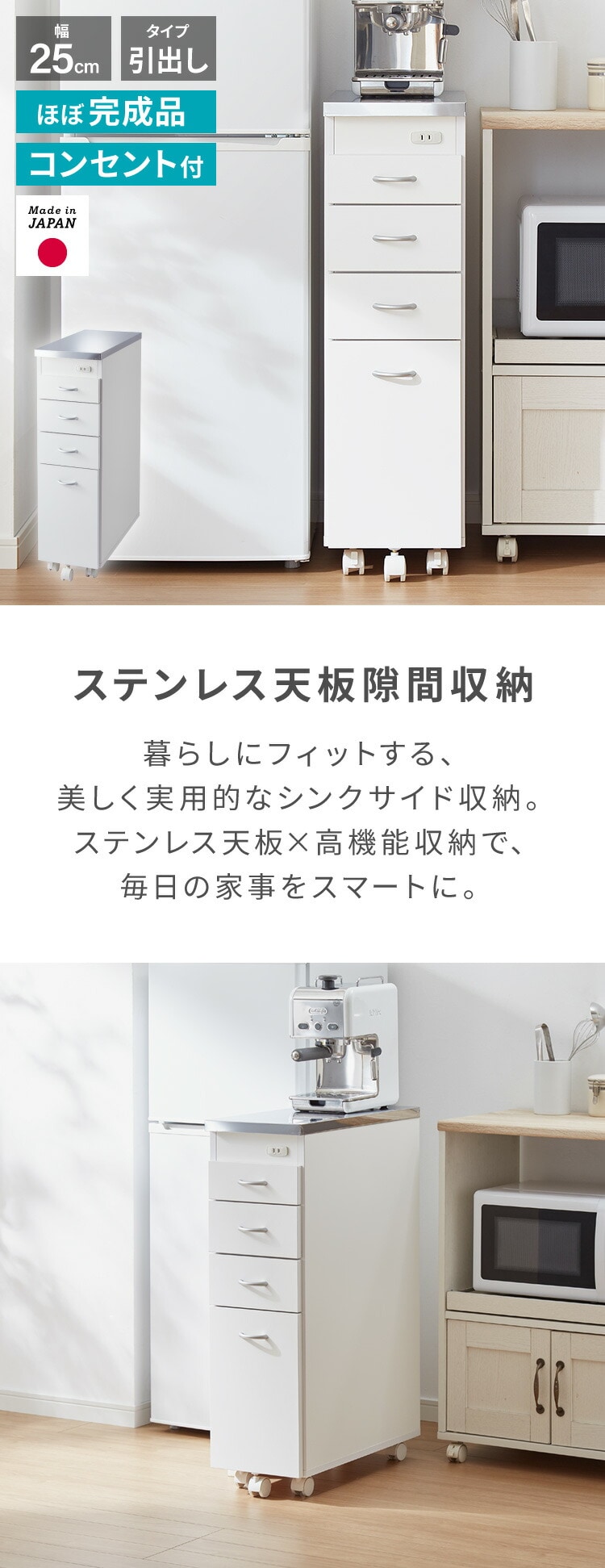 日本製 ステンレス天板 キッチン収納 幅25cm キャスター付き 引き出し4段 スリムチェスト シンク横ラック コンセント付き キャスター付き 隙間収納 スリムラック キッチンストッカー 省スペース【送料無料】