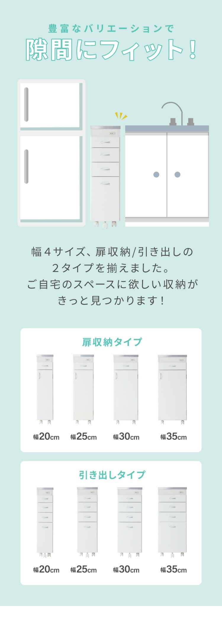 スリムサイズでキッチンに無駄なく収納を増やしたい方