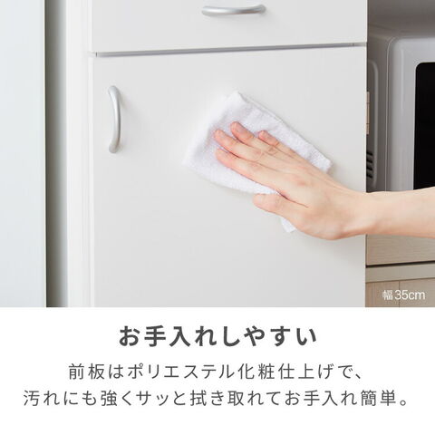 前板はポリエステル化粧仕上げで、汚れにも強くサッと拭き取れてお手入れ簡単