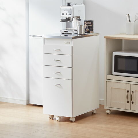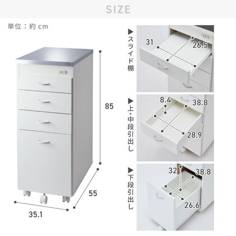 日本製 ステンレス天板 キッチン収納 幅35cm キャスター付き 引き出し4段 スリムチェスト シンク横ラック コンセント付き キャスター付き 隙間収納 スリムラック キッチンストッカー 省スペース【送料無料】のレビュー