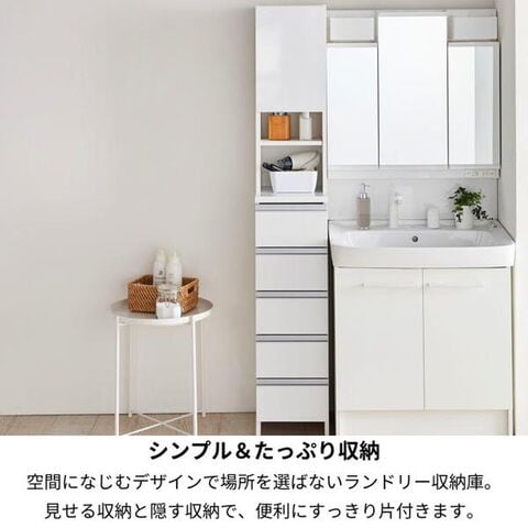 日本製 鏡面仕上げの高級ランドリーチェスト チェスト 幅75cm 高さ180cm 背面化粧仕上げ 完成品 開梱設置無料 薄型 棚 ランドリーチェスト ランドリーラック【送料無料】