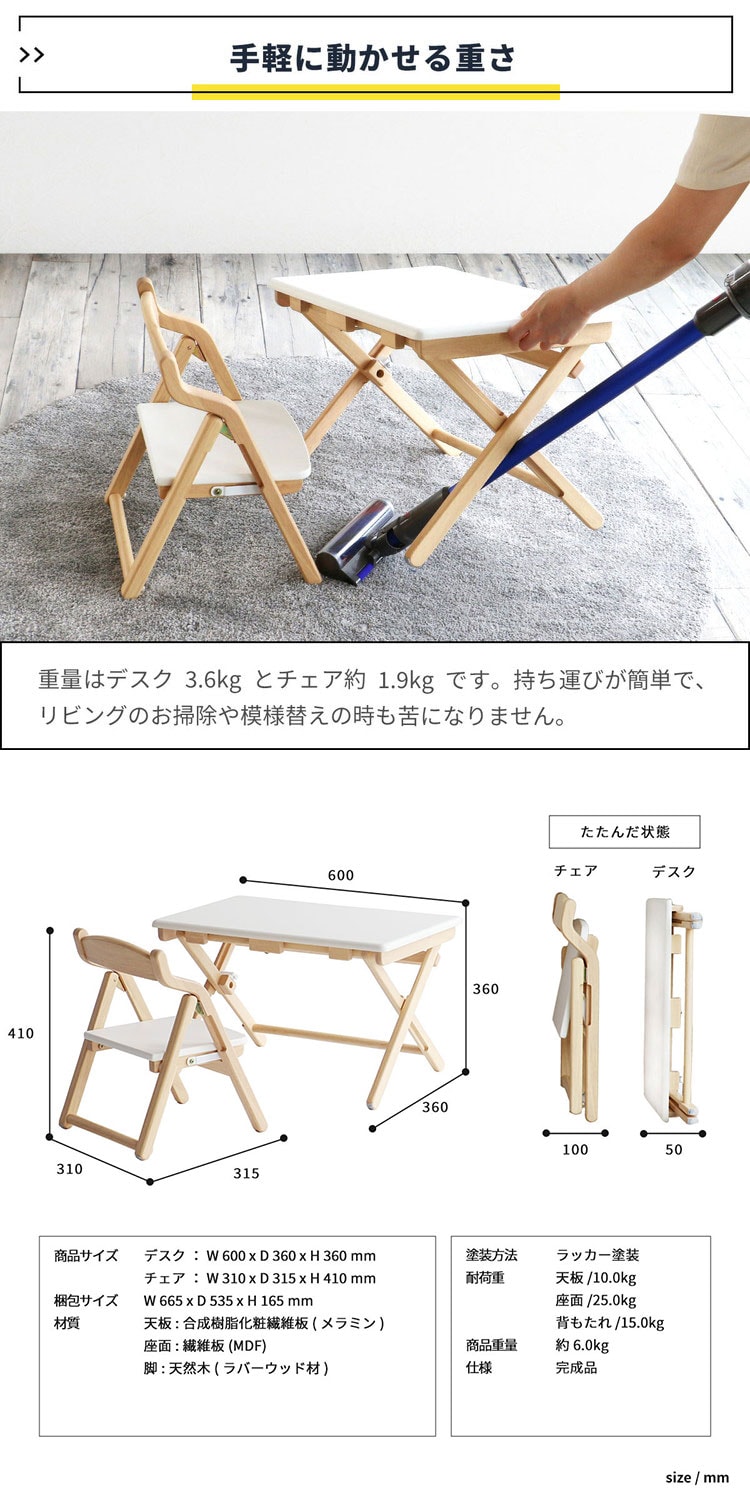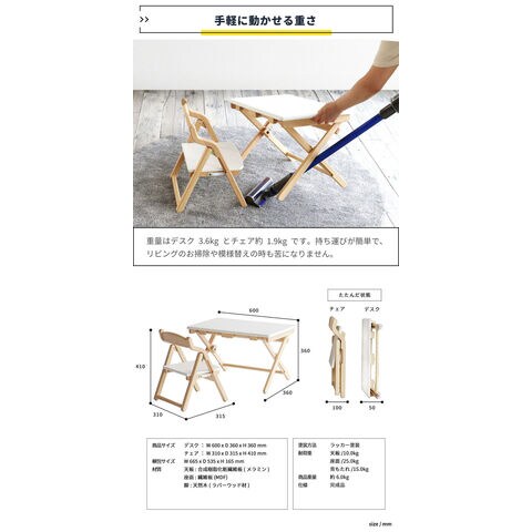 デスク/幅600 × 奥行360 × 高さ360(mm) チェア/幅310 ×奥行315 ×高さ410(座面高200)mm