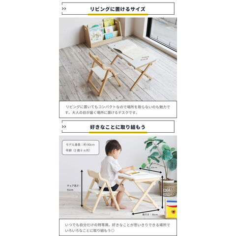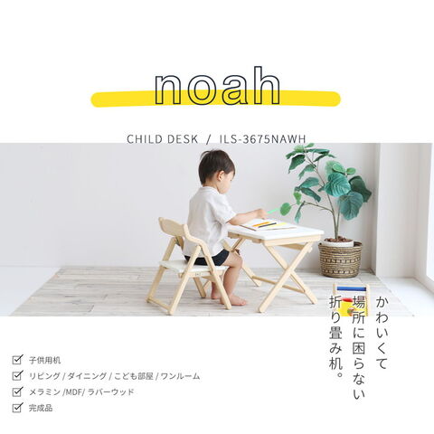 キッズデスク チェアセット ロック付き 折りたたみ コンパクト 収納 キッズテーブル チェア リビング 子供部屋 子ども 育児 お祝い プレゼント noah ILS-3675【送料無料】