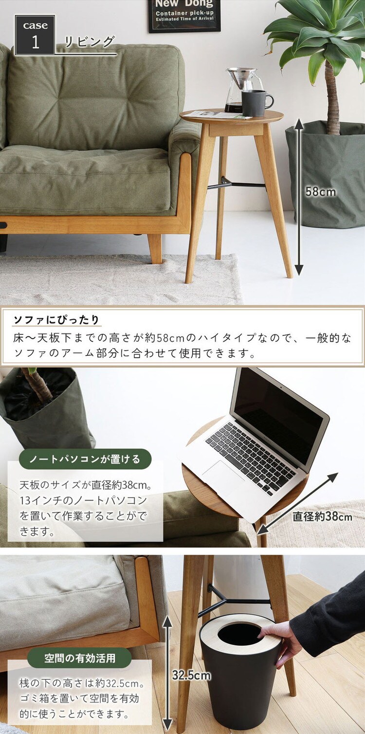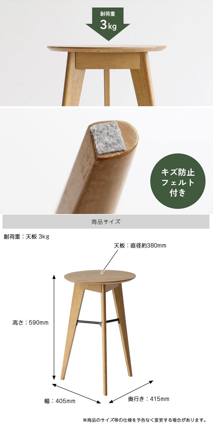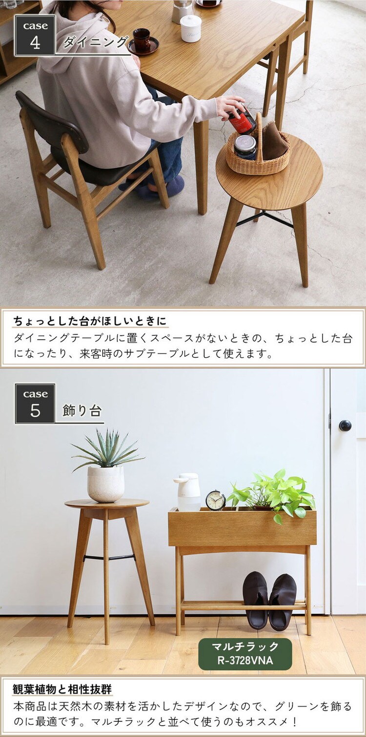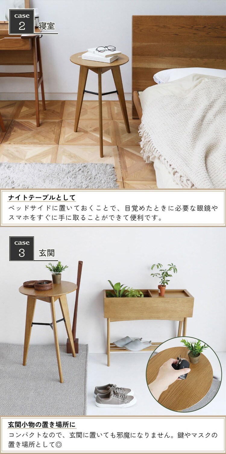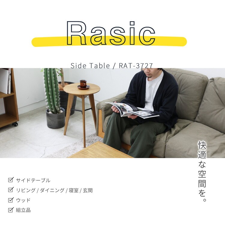 サイドテーブル 3本脚 幅40 41.5 高さ59cm ソファサイド ベッドサイド 木製 オーク リビング ダイニング テーブル ラウンジ 寝室 玄関 ミニテーブル RAT-3727NA【送料無料】