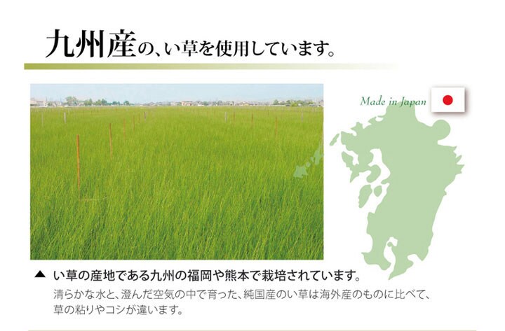 表地=い草(九州産) ※双目織 ヘリ=ポリプロピレン、ポリエチレン