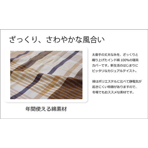 布団カバー 洗える チェック柄 インド綿使用 バジル 掛け布団カバー ブルー ダブル 約190×210cm【送料無料】