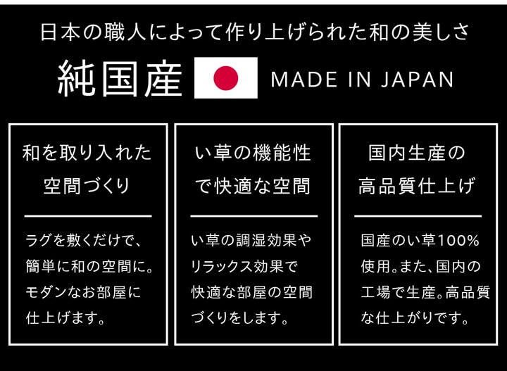 素材:表地=い草(九州産) 裏地=ウレタンフォーム6mm ※紋織 ヘリ=綿85% 麻15%