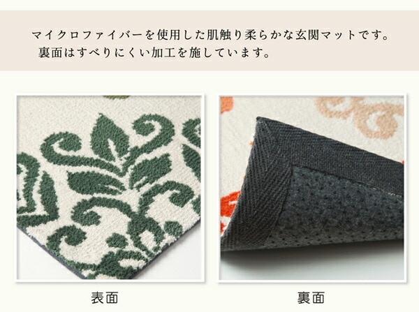 明るいアイボリーと爽やかな色彩がお部屋を明るく彩る玄関マットです。表地はパイル長10mmのマイクロファイバーをニット編みすることでより柔らかな肌触りを実現しました。ふわふわとした優しい踏み心地をお楽しみ下さい。裏面にはすべりにくい加工を施しています。