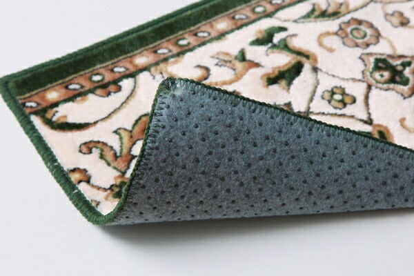 玄関マット あがり框 洗える モケット織り 王朝柄 メンデル グリーン 30×90cm 滑りにくい加工【送料無料】