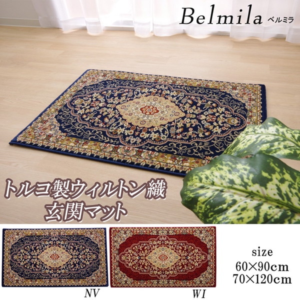 トルコ製 ウィルトン織り 玄関マット ベルミラ ワイン 約60×90cm【送料無料】