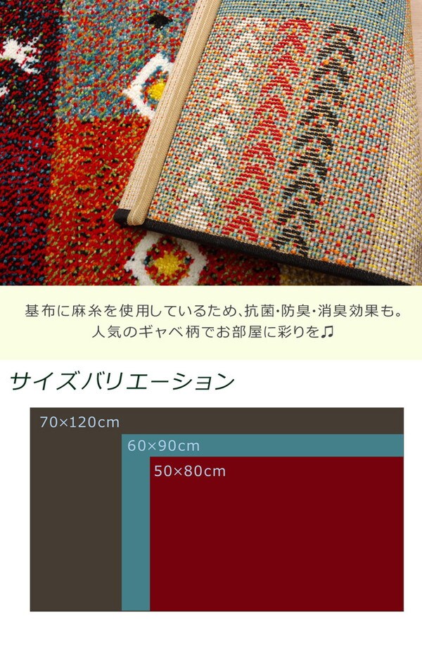 ギャベ柄を落ち着きのある色合いのグラデーションでまとめました。ウィルトン織りは非常に耐久性の高い織物です。