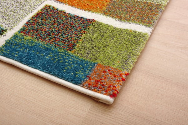幾何柄を落ち着きのある色合いのグラデーションでまとめました。ウィルトン織りは非常に耐久性の高い織物です。