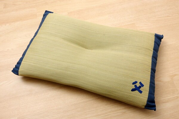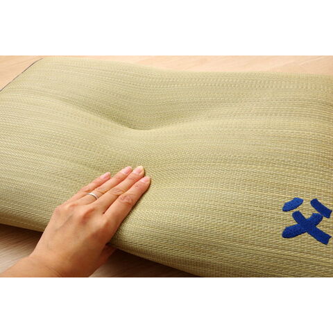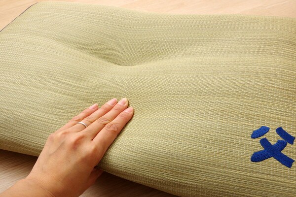 より頭にフィットするよう、枕の中心部分に「くぼみ」をつくりました。快眠い草の効能として1.綿の約2.5倍の吸湿力 2.蒸れにくい。汗による湿気を吸うことにより温度を下げ快適な就寝を促します。 3.汗のにおいを軽減。汗のにおいの元となる化学物質を90%以上抑えます。などがあります。国産(九州産)のしなやかなイ草を使用していますので、柔らかく、すべすべしたとした肌触りです。