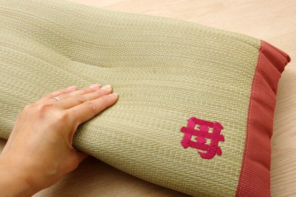 ※メセキ織 中材=低反発ウレタンチップ100% ヘリ=綿100%