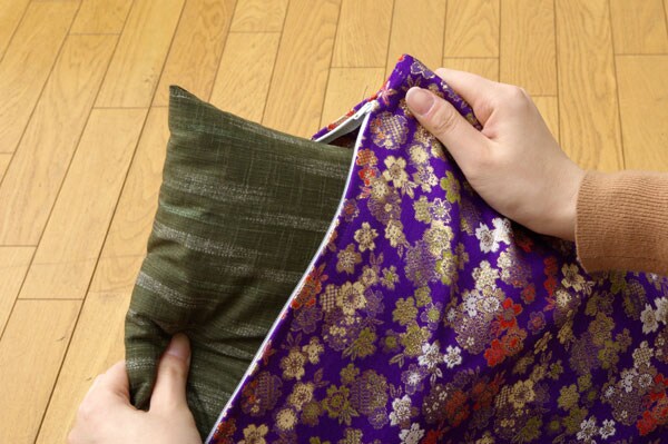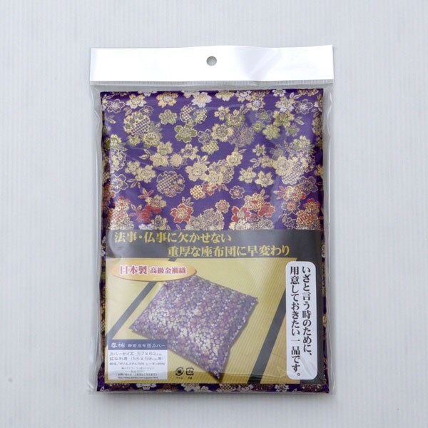 金襴生地を使用した八端判サイズ(座布団サイズ:59×63cm)の仏前座布団用カバーです。お手持ちの座布団に被せるだけで仏前座布団としてご使用頂けます。いざという時も便利な一枚です。本製品は着脱しやすいファスナータイプです。