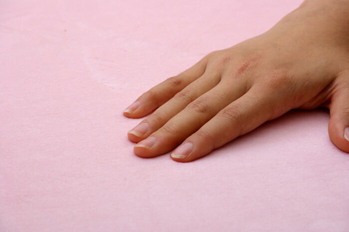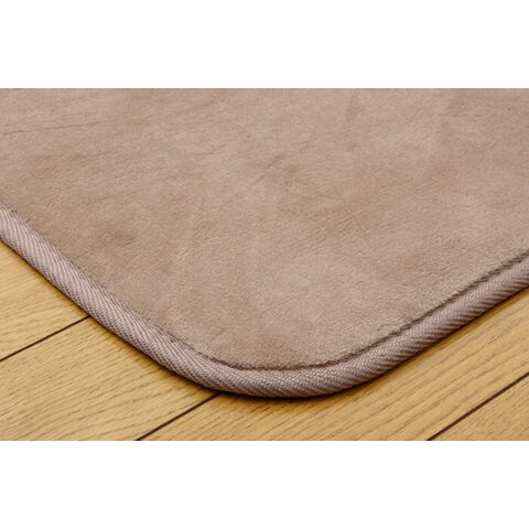 表地にフランネル糸と呼ばれる繊維を使用し、なめらかなでしっとりとした肌触りに仕上げました。又表地には撥水加工を施しており、万が一水などをこぼしても表面張力で水玉状に汚れをはじき、染み込みにくいのでお手入れが簡単です。中材にはウレタンを5mm使用しており適度なクッション性があります。裏地にはフローリングを傷付けにくい不織布を貼っています。秋冬シーズンにはホットカーペットカバーとしてもご使用頂けます。