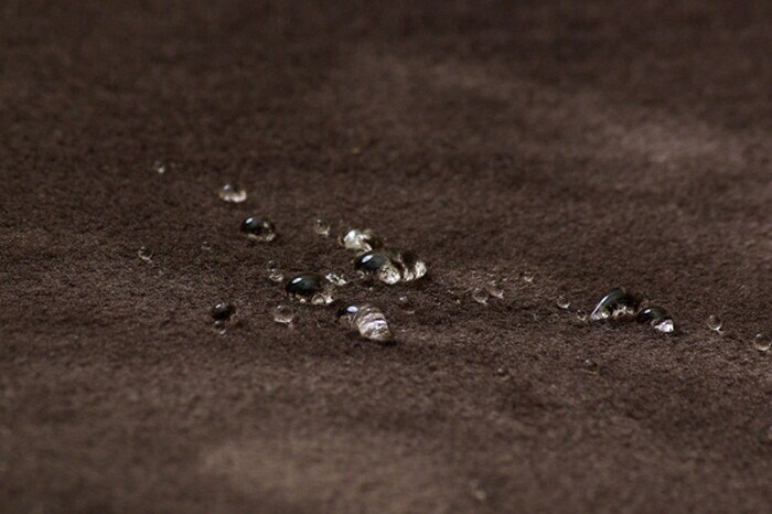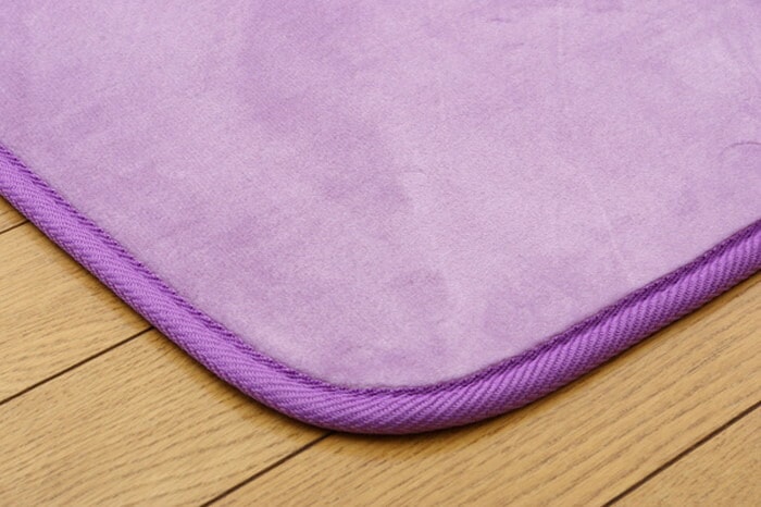 表地にフランネル糸と呼ばれる繊維を使用し、なめらかなでしっとりとした肌触りに仕上げました。又表地には撥水加工を施しており、万が一水などをこぼしても表面張力で水玉状に汚れをはじき、染み込みにくいのでお手入れが簡単です。中材にはウレタンを5mm使用しており適度なクッション性があります。裏地にはフローリングを傷付けにくい不織布を貼っています。秋冬シーズンにはホットカーペットカバーとしてもご使用頂けます。