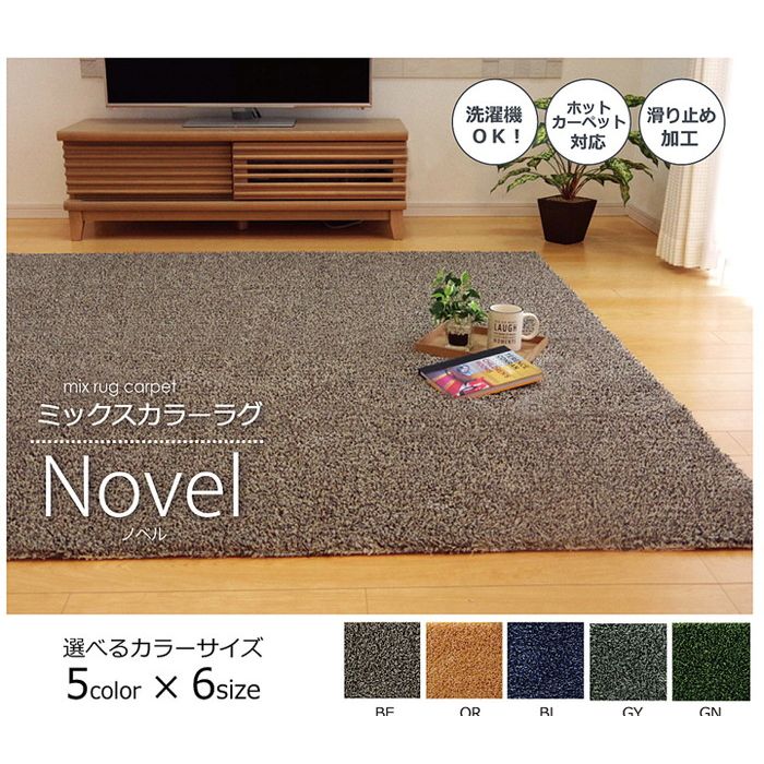 ラグ マット カーペット 3畳 洗える タフト風 『ノベル』 ベージュ 140×340cm すべりにくい加工 ホットカーペット対応【送料無料】